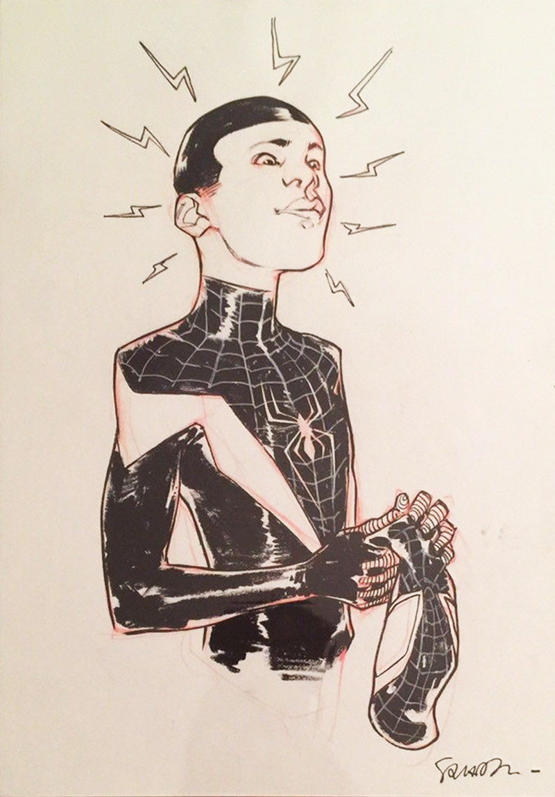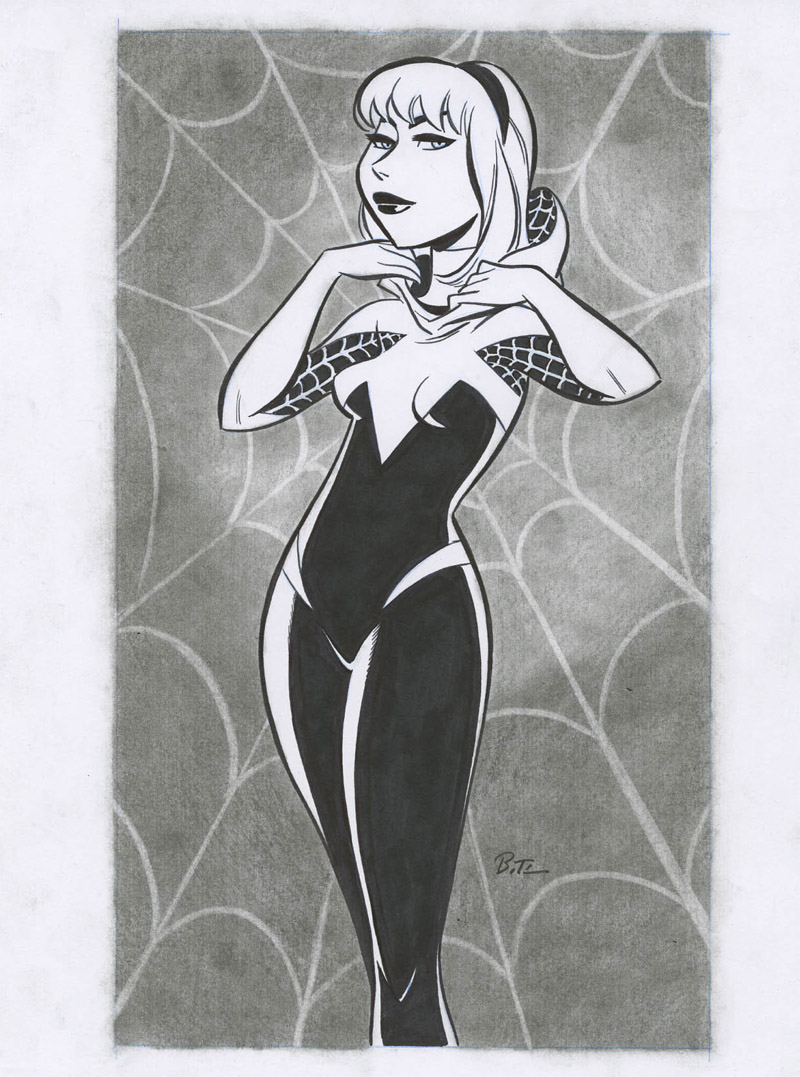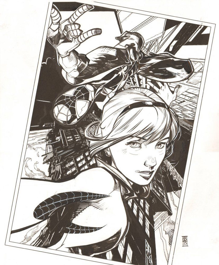 Playful and highly detailed drawing by Greg Land who drew Spider-Gwen on her first