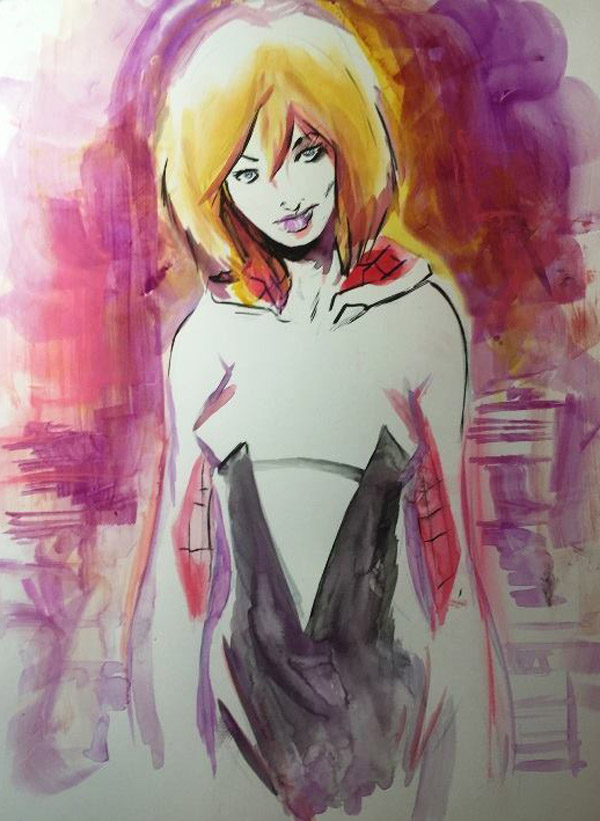Elegant watercolor by the co-creator of Spider-Gwen who created her iconic costume.